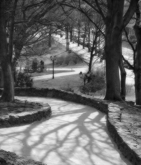 Когда не было желания (чаще – денег, т.к. никакого денежного довольствия нахимовцы не получали) идти в кино или на танцы, просто гуляли по тенистым паркам и зелёным улицам-бульварам города. Парковая зона начиналась прямо от территории училища. Вышел через КПП, свернул влево, перешел через дорогу (бульвар Падомью), и ты на асфальтированных дорожках, вьющихся вдоль городского канала с мостиками и водопадами. Это - ближайший к училищу парк, где у мостика Агте несёт свою постоянную вахту фонтан-водомёт, построенный ещё в прошлом веке (1898 г.)."