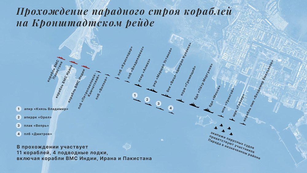 Впервые в истории проведения Главного военно-морского парада в нем участвовали сразу три атомные подлодки – головной стратегический ракетоносец модернизированного проекта 955А "Князь Владимир", многоцелевые АПЛ "Вепрь" (проект 971) и "Орел" (проект 949А).