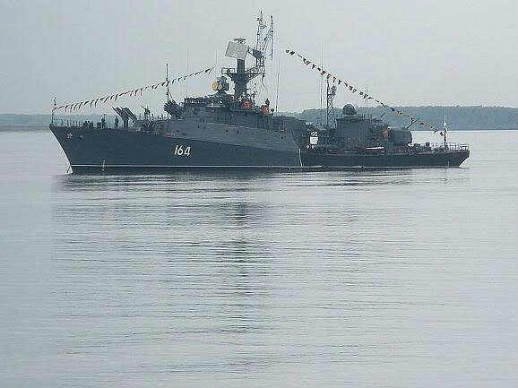 "Онега" и "Нарьян-Мар" – малые противолодочные корабли проекта 1124М. Предназначены для поиска, обнаружения, классификации и уничтожения субмарин. Вооружены двумя двухтрубными поворотными 533-мм торпедными аппаратами, 12-ствольными реактивными бомбометными установками РБУ-6000, зенитно-ракетным комплексом "Оса-МА" и артиллерийскими установками АК-176 и АК-630.