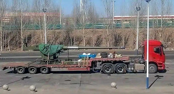 Наблюдатели сразу же связали появление орудия со снимками прошлого года. На фотографиях, распространявшихся в апреле 2025-го в социальных сетях, было изображено новое крупнокалиберное орудие с корабельной установкой, перевозимое на грузовой автомобильной платформе. На одном из снимков были указаны некоторые технические спецификации груза, из чего наблюдатели и сделали вывод о калибре и массе пушки: 155 мм и 21 800 кг.