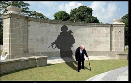 Может быть… Может быть… И опять же, как напоминание, мы сделали все, что смогли, заплатив высокую цену, чтобы вы могли, строить, творить, создавать и беречь, и защищать , и жить лучше нас. Конечно и это. И все же, глядя на этот коллаж, почему-то остро щемит внутри и появляется какое-то чувство вины: невольно думаешь о том, хватило ли этому солдату, в старости внимания, обыкновенной чуткости, просто тепла. Чувствовал ли он, что его прожитая жизнь кому-то интересна, особенно на закате лет, спрашивал ли кто-то даже о том, где и как болит, как настроение, что снилось ночью, о чем думает, или почему молчит… Был ли согрет теплом близких ему людей, которого порой так не хватает? « Как мало их осталось на земле. Не ходят ноги и тревожат раны. И ночью курят, чтобы в страшном сне вновь не стреляли в них на поле брани. Мне хочется их каждого обнять, теплом душевным с ними поделиться. Была бы сила, чтобы время вспять…, но я не Бог, война им снова сниться. Пусть внукам не достанется война и грязь ее потомков не коснется. Пусть курит бывший ротный старшина и слушает как правнучек смеется « ( стихи из интернета).