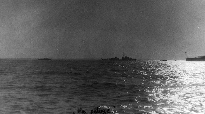 Такое спокойное море бывает очень редко Вечер, солнце садится в дымку горизонта, лишь нос эсминца нарушает спокойствие этих вод.